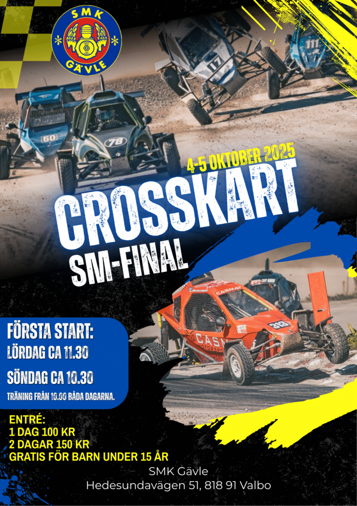 – Mat och dryck: Finns att köpa på platsVi ser fram emot en fantastisk tävlingsdag där förare och publik samlas för en häftig upplevelse.